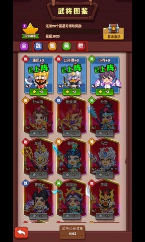 游戏里的武将被划分为魏、蜀、吴、群四个阵营,而且每个武将都能归到战、射、策这三种类型里。玩家收集武将后,就能激活图鉴并得到宝箱奖励。