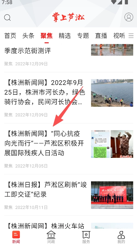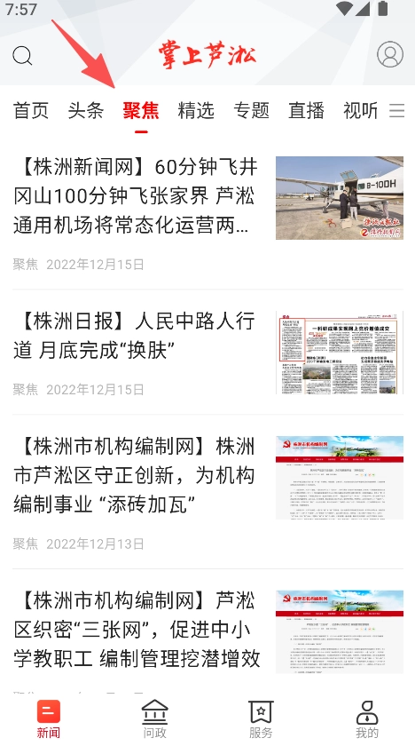 具备本地新闻浏览功能,设有聚焦、头条等新闻分类,方便用户第一时间了解芦淞本地的热点事件与政策动态。