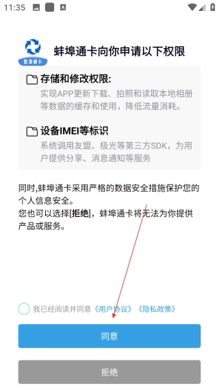 打开蚌埠通卡,点击【同意协议】。