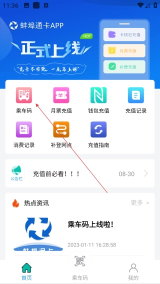 进入页面后,点击【乘车码】即可。