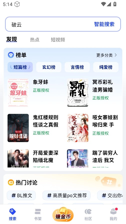 在搜索页面,你既可以通过榜单查找,也能直接进行智能搜索,从而找到自己喜欢的书籍。
