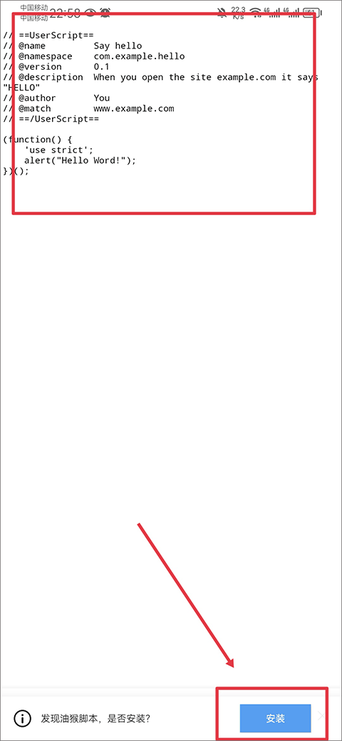 7、进入之后,便会呈现脚本代码。此时,你既能够选择复制脚本代码进行添加安装,也能够直接点击下方弹出的安装选项即可。