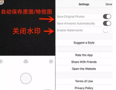 为避免留下遗憾,打开「Prisma」后,我们先对软件进行设置。开启保存原图或效果图功能(如此一来,任何套上滤镜的作品都能自动保存下来),水印关闭与否可依个人喜好决定。