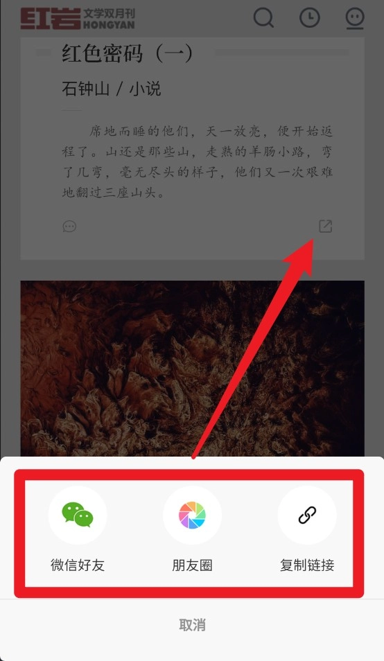 点击右下角的图标,就能把文章快速分享给微信好友、发到朋友圈,也可以复制链接后自己转发。
