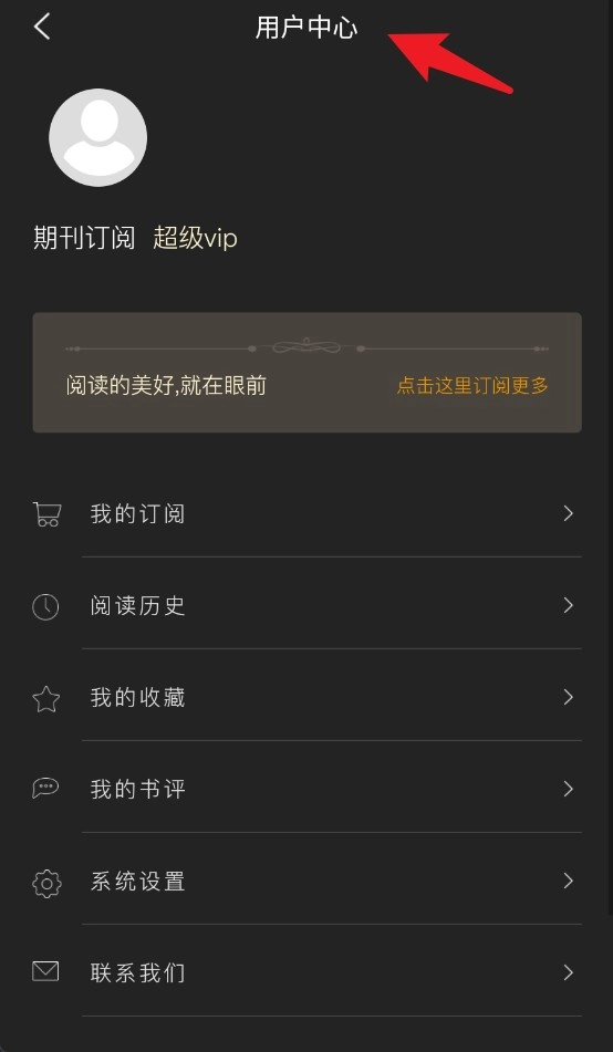 点击右上角的按钮进入用户中心,在这里可以查看订阅状态、阅读记录、收藏的书籍,还能使用系统设置等功能。