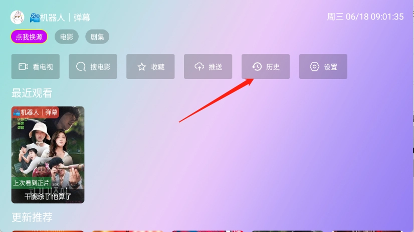 进入首页点击“历史”。