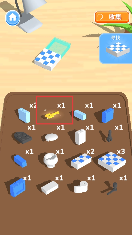 收集积木部件,其中包含钥匙这类特殊道具,以此来扩充搭建所需的资源。