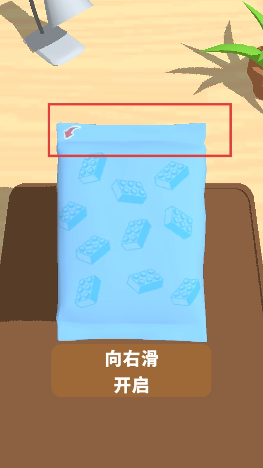 向右滑动即可开启积木包,从中获取搭建所需的零件,为后续的组装工作做好准备。