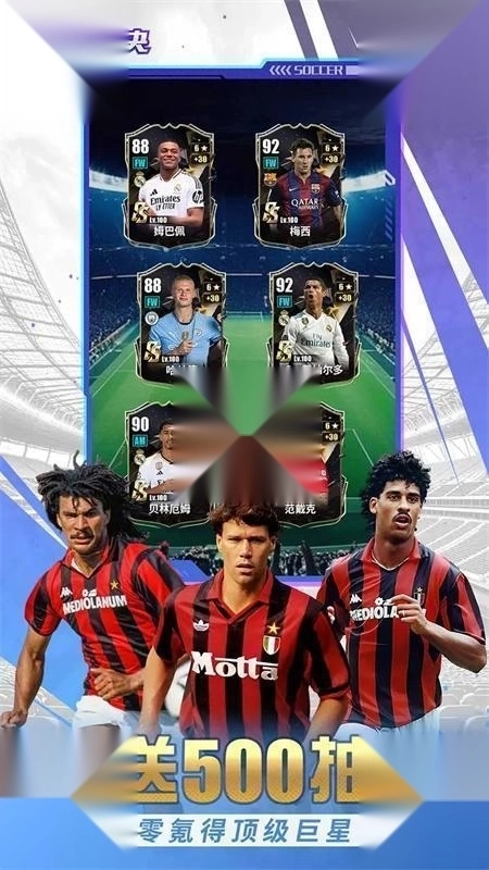 获得授权,拥有海量球星阵容。其中涵盖了数百位知名球星,玩家能够自由招募并组建梦幻阵容,打造出独一无二的足球战队。