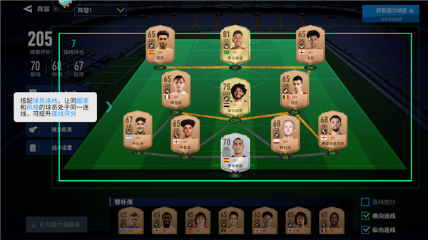 合理规划球员间的连线组合,把来自同一国家或者球风相近的球员编为一队,以此提升团队的整体连线评分。
