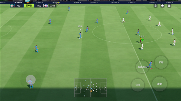 左侧负责控制角色的移动方向,右侧则可操作铲球、切换球员、加速跑动等技能,现在就正式开启你的绿茵征程吧。