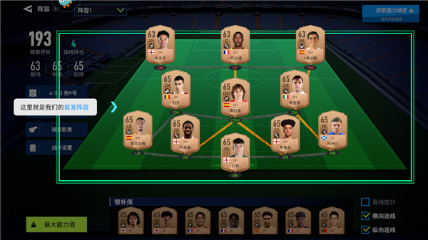 进入阵容界面后即可查看当前的首发配置;