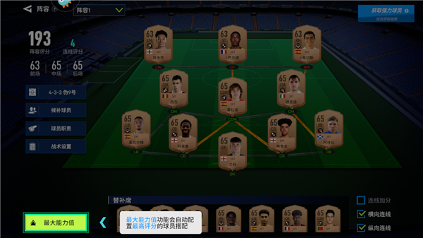 若想优化阵容搭配,点击“最大能力值”选项后,系统会自动为你推荐最强组合。