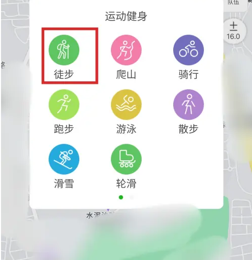 选择“运动类型”图标,在弹出界面选择“徒步”