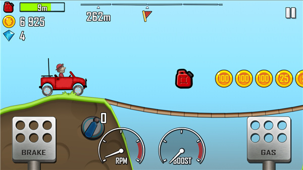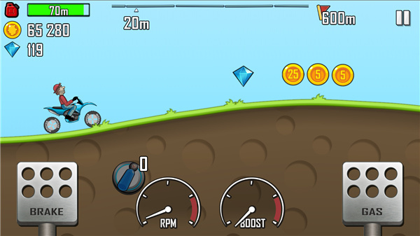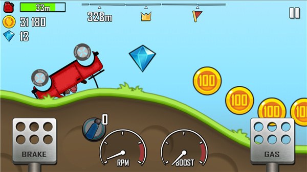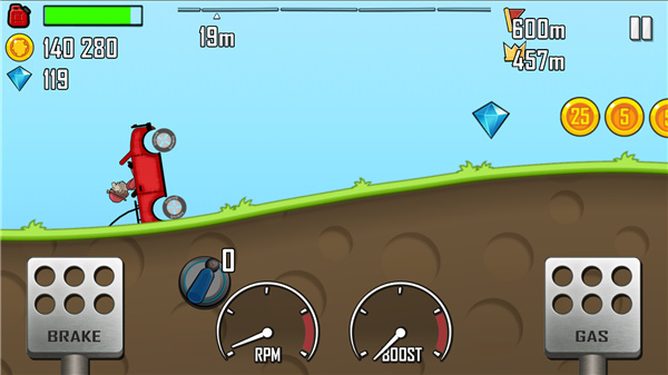 这游戏真是让人玩得停不下来!画面看起来平平无奇,但一上手就根本没法放下。操作特别简单,就两个按钮分别控制油门和刹车,新手看一眼就会了。每一局都开着小破车爬坡、过坑,一路上疯狂收集金币,还时不时会翻车“表演杂技”,特别逗乐。地图也很有意思,从沙漠到月球,每个场景的路况都不一样,挑战感直接拉满。