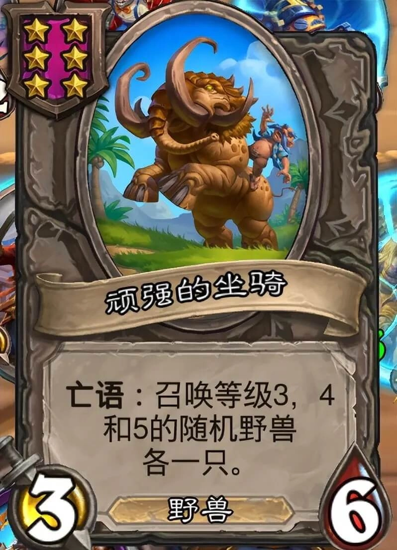 和上面的遗骸看管者类似,一本的无害骨颅在这个赛季也调整了效果,合金后会召唤四个1/1的骷髅。要是前中期抽到的数量多,合金后甚至能用到决赛。野兽体系里本身就有不少召唤多个小弟的亡语随从,比如五本的机械木马其实也完全能用,只是它不像无害的骨颅那么容易合金。