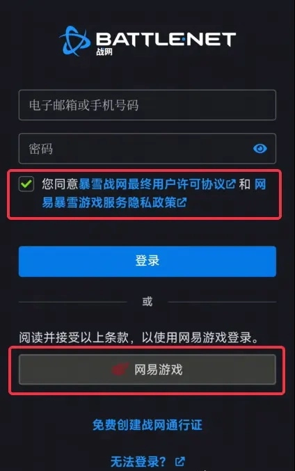 在启动战网客户端的同时打开战网网页,仔细阅读相关条款后勾选同意选项,接着点击网易游戏对应的按钮。
