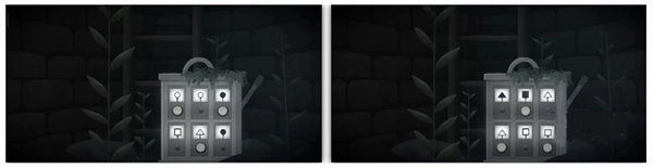 随后我们抵达水井并走了进去,两位玩家会同时看到一个密码锁。不过,两个玩家能够修改的密码位置是不一样的。