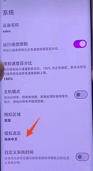 在设置界面点击“系统”,将模拟语言设置为中文。