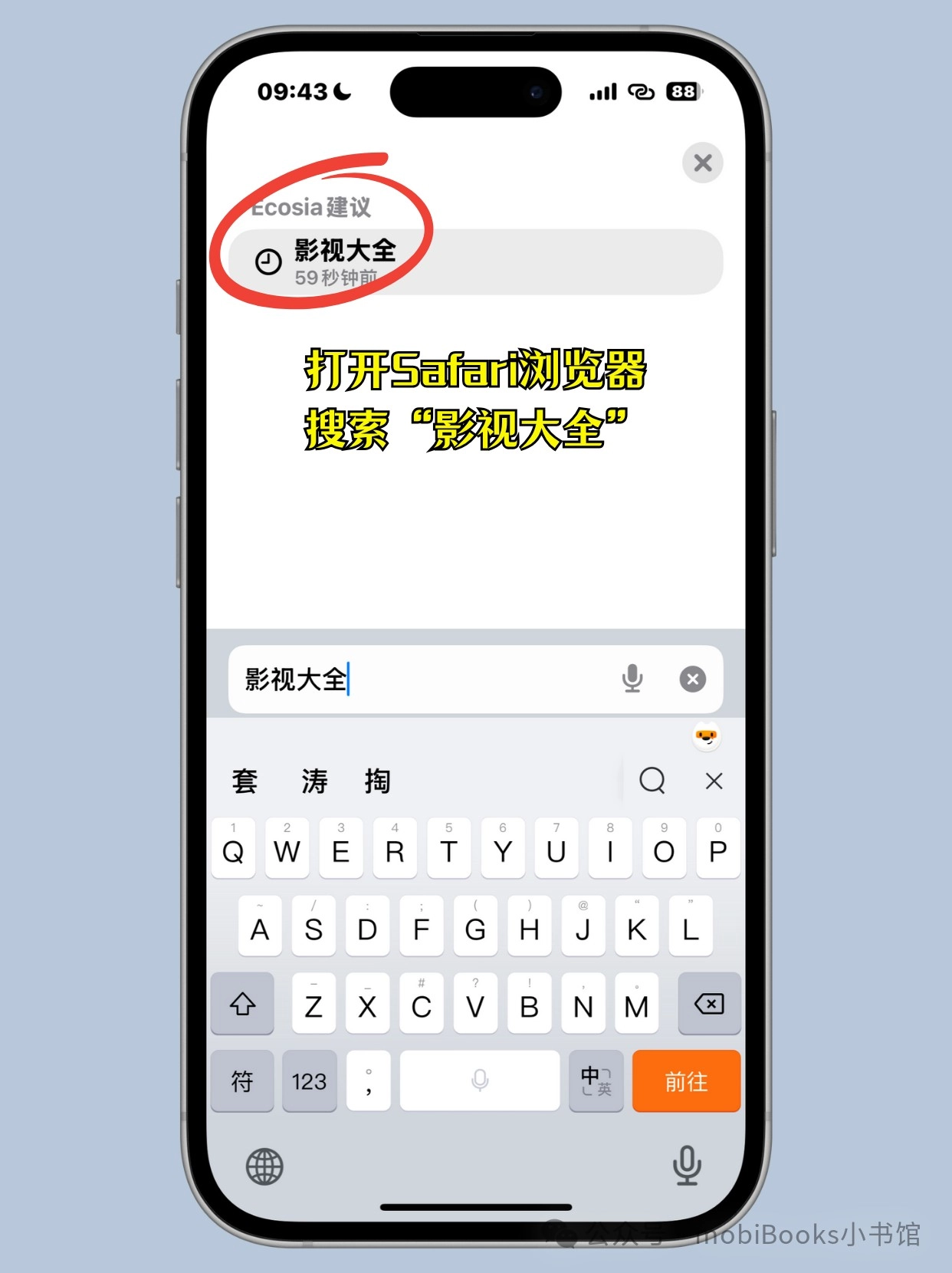 打开Safari浏览器,在搜索框中输入“影视大全”,就能开启追剧之旅了。
