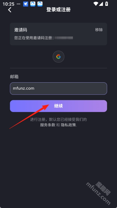 要是没有谷歌账号的话,就输入邮箱地址,点击“继续”按钮,接着把邮箱收到的验证码填写进去,这样就能完成注册了。