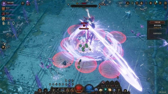 两个全屏范围攻击技能释放完毕后,会固定衔接最后一个技能:审判之光会从地图最外围开始,呈一圈圈向内的方式落下,颜色包含白金色与黑紫色两种。