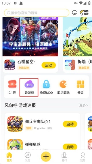 打开闪玩,在首页点击云游戏