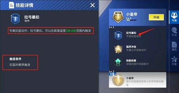 ●5星:○打法特色:达到5星的新秀大帝将解锁补扣技能,在争抢篮板的过程中能够直接完成得分。