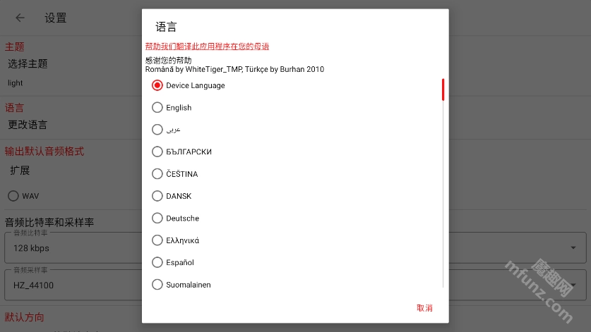 接下来在设置界面里选择输入音频格式,保持默认的mp3设置就可以了。