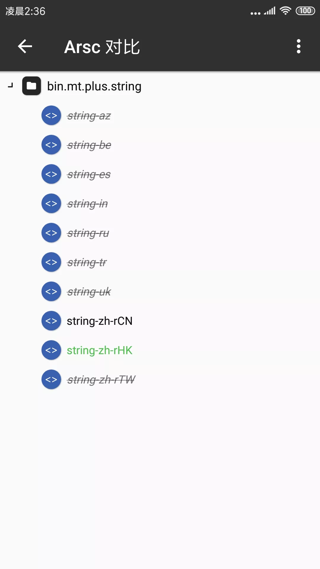 选中两个APK或ARSC文件后长按,就能开展资源表的对比操作。