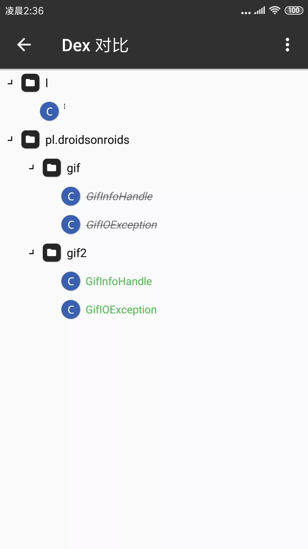 当选中两个APK或DEX文件后,长按即可对它们的DEX内容进行比较。