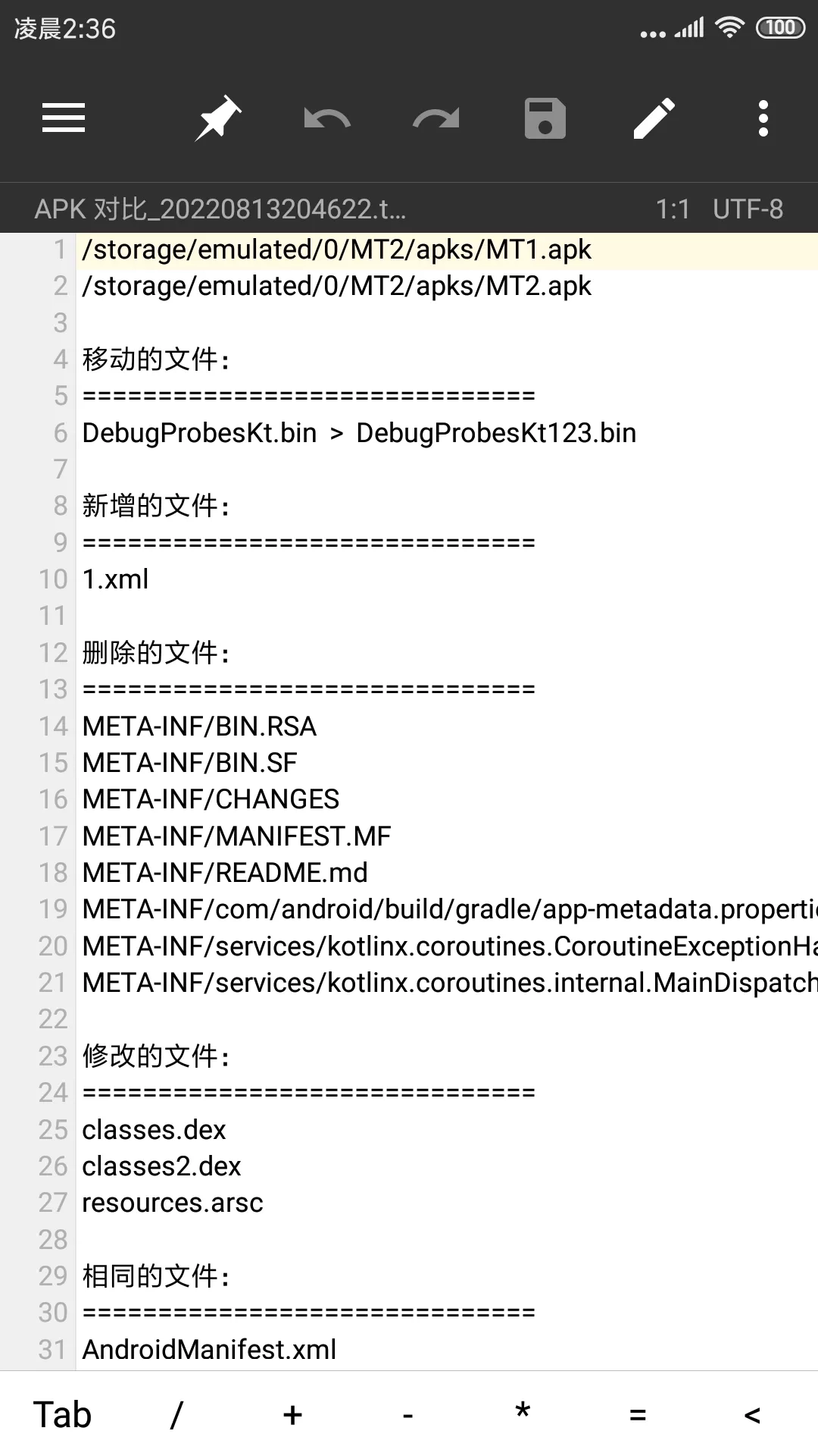 mt管理器配备了多种文件对比工具,能协助你迅速找出两个文件之间的差异。