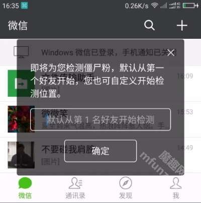 系统会自动跳转至微信界面,您只需点击“开始检测”按钮即可启动检测流程。检测默认从第一位开始,您也可以根据需要自定义起始位置,之后耐心等待检测完成就好。
