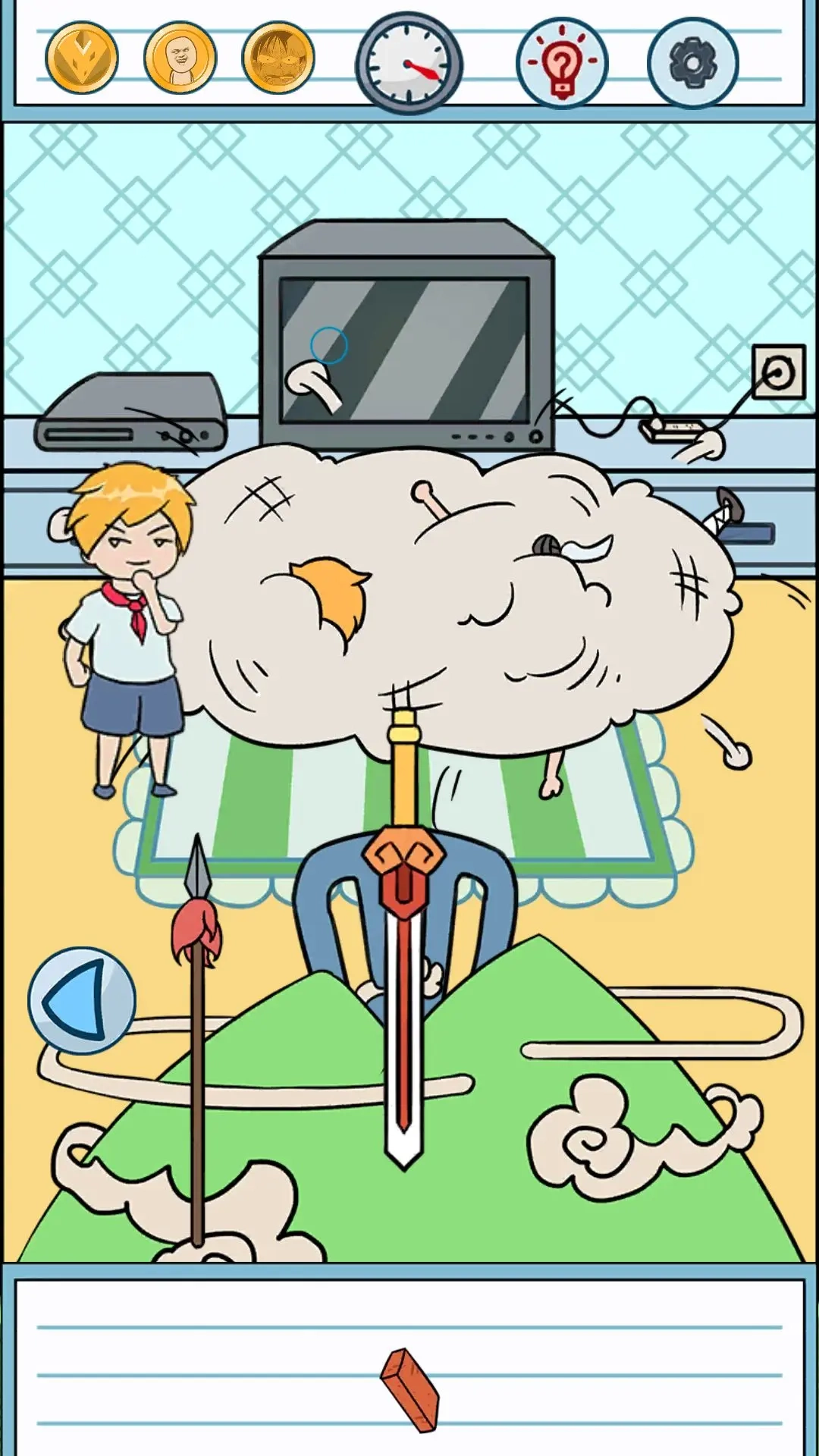 成就3:前往左侧房间拾取板砖,再随意选一把武器,用板砖攻击二郎神。