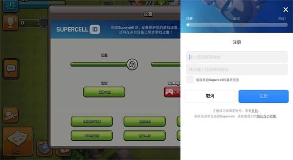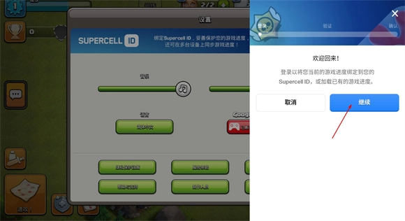 进入游戏完成新手教程后,点击右下角的齿轮图标,接着点击supercell ID区域显示的“已断开”选项。