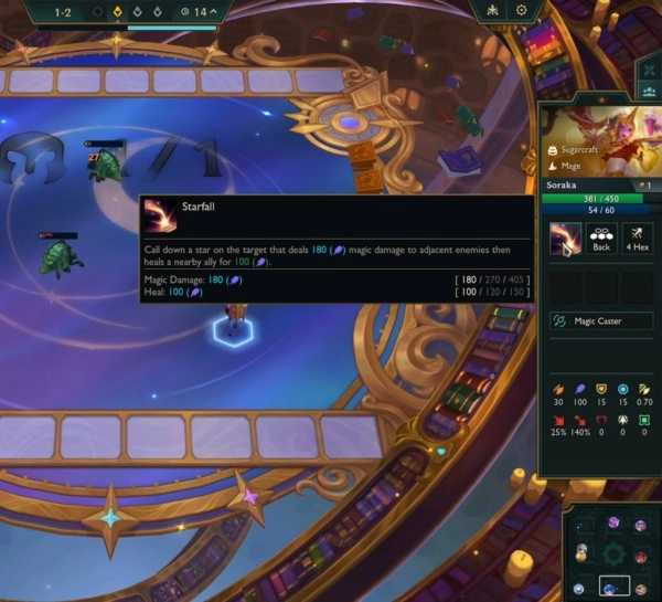 一旦他们的法力值蓄满,便会释放自身的技能。索拉卡的技能名为“星陨”,能够对周围的敌人造成伤害,同时为附近的队友恢复生命值。