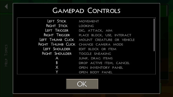 而“gamepad controls”选项会给出操作指引,包含移动、采集、建造等重要操作的演示,新玩家能借助多次练习来熟悉按键排布。