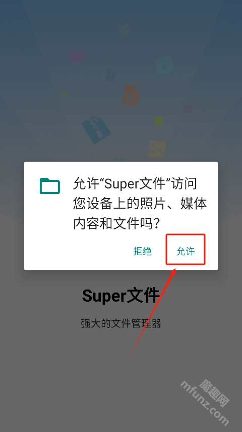 首先前往魔趣网下载并安装esuper文件浏览器,随后点击“允许”即可进入该软件。