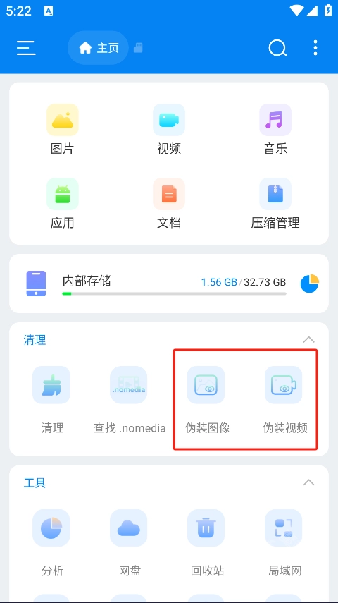 首页还设有“伪装图像”和“伪装视频”功能,点击进入后就能迅速定位到本地存储的伪装图像或视频。