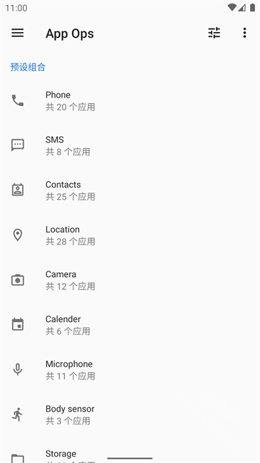 之后,在AppOps的首页可以查看到本机安装的所有应用,还能查看这些应用所要求的全部权限内容。
