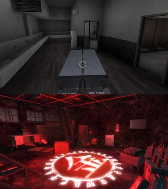 接着前往2F「体育仓库」东边的走廊,触发女鬼上吊的剧情。