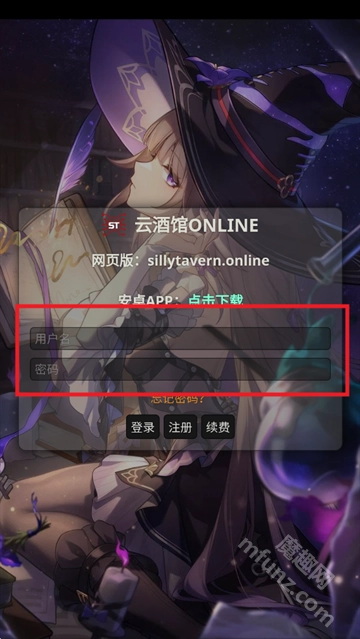 打开Silly Tavern手机版后,输入对应的用户名与密码。