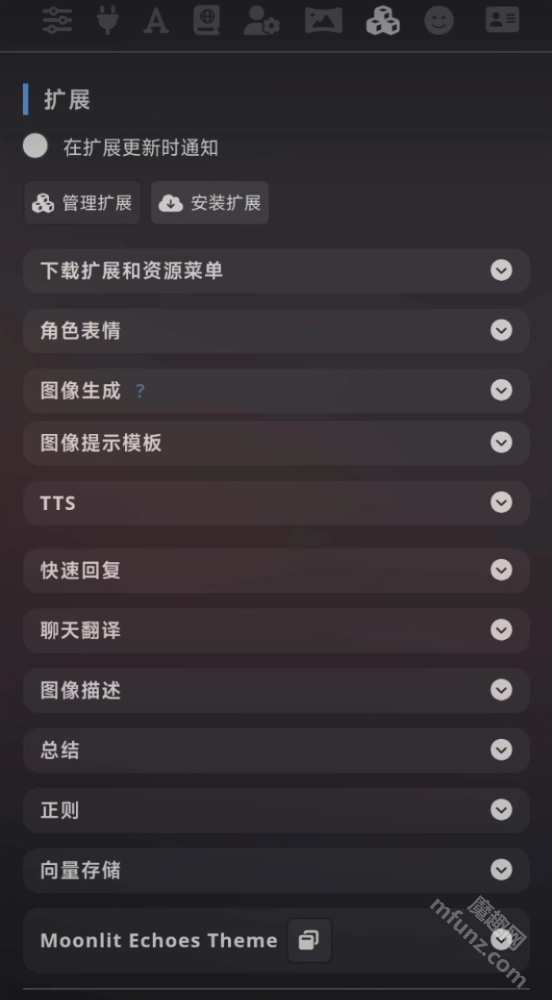 首先在顶部菜单中点击进入“扩展”页面。