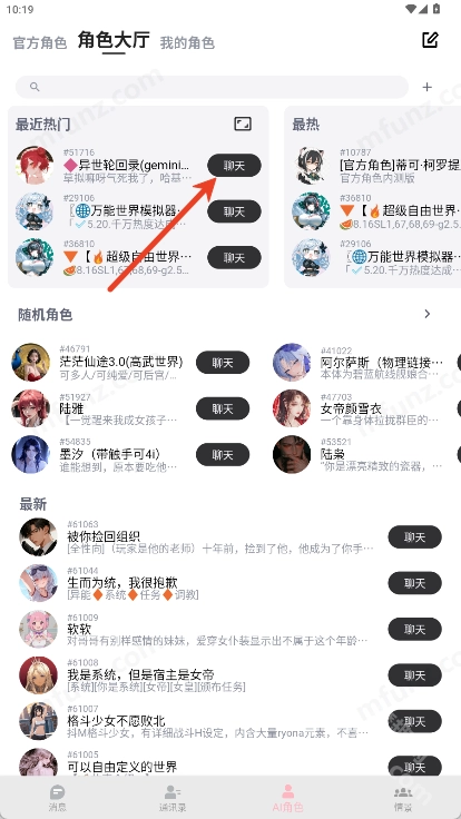 打开DicKCat迪克猫AI软件,在角色大厅挑选一款角色,然后点击聊天按钮开始互动。