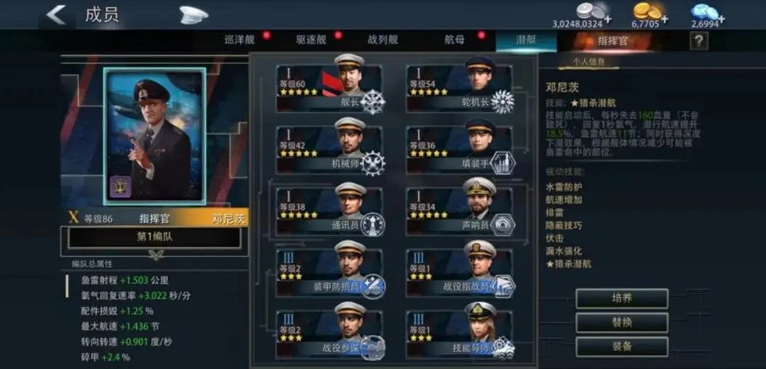 除了前面提到的3位通用指挥官,接下来要介绍的是某一系专精玩家在晋升过程中绕不开的潜艇与舰船(适合肝帝或中氪玩家,这类玩家有能力攒够38万8进行抢购,或是通过商城购买碎片获取):潜艇方面推荐克雷,这里就不展开过多解释了;驱逐/巡洋方面,库兹涅佐夫是专门针对潜艇的舰船,能起到克制作用,阿利伯克则可以有效提升鱼雷输出能力。
