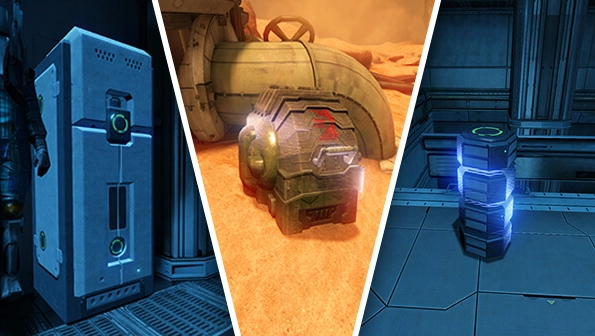 储物柜及其他容器会在任务场景中出现,里面装有对当前任务推进有帮助的各类补给——像能恢复Warframe生命值与能量的药剂,还有武器所需的弹药等。此外,它们也包含任务完成后会派上用场的物品,比如用于购买新道具的现金,以及铸造厂制造装备所需的各类资源。需要注意的是,储物柜可直接开启获取物品,而其他容器则需要使用武器破坏后,内部物品才会掉落出来。
