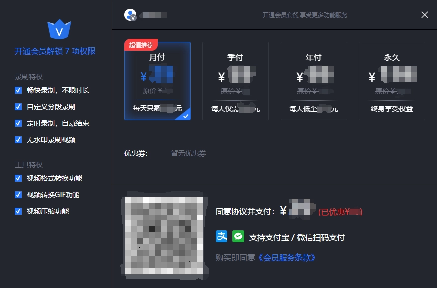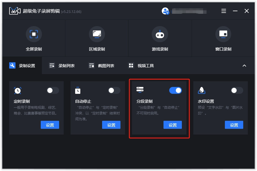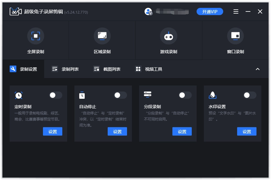 用户可以使用多种录制设置。开通会员后,还能使用定时录制、自动停止、分段录制、水印设置等功能。