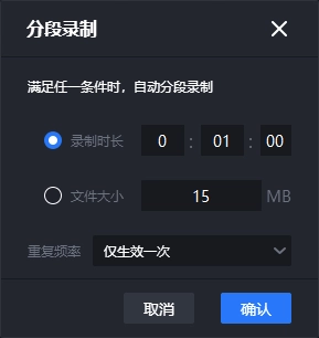 支持用户把录制时长或视频大小设置成分段录制的触发条件。当用户开启该功能后,录制视频时系统就会自动将视频拆分成多个片段。