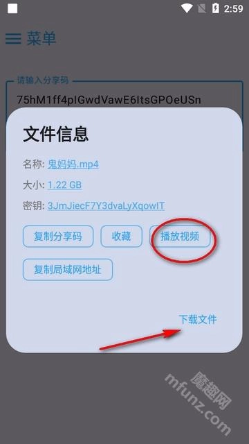 便捷分享功能:文件上传完成后,系统会自动生成包含密钥、文件地址及文件大小信息的专属分享码,用户只需一键操作即可快速分享文件,整个分享流程具备高度保密性。