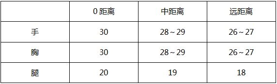 胸部伤害乘以4等于头部伤害,而击中护甲的伤害需要在这个结果的基础上再乘以0.8。